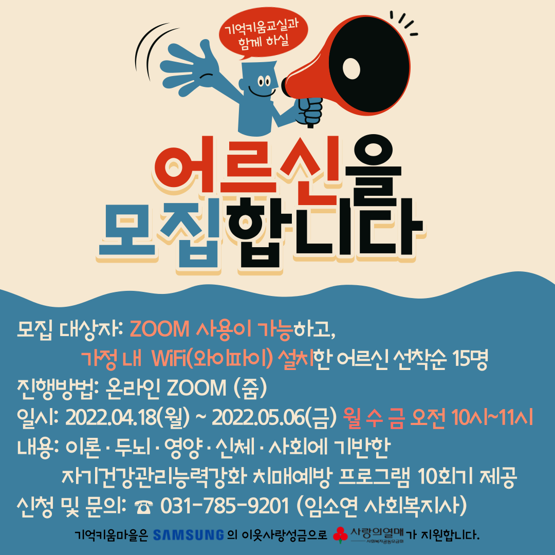 [건강관리-나눔과꿈] 복지관형 기억키움교실(비대면) 대상자모집 (마감)