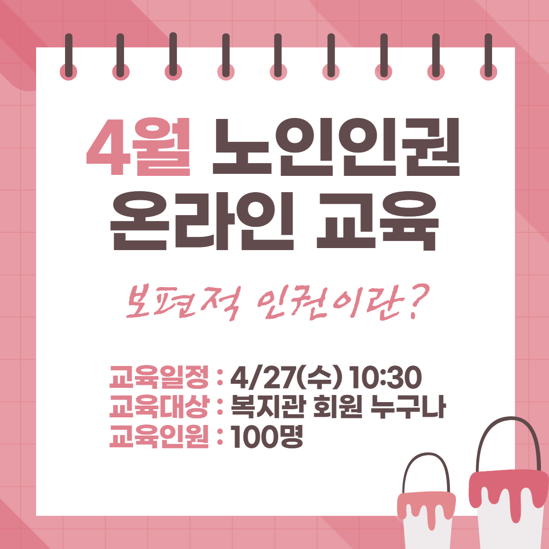[노인인권] 4월 복지관 회원 온라인 노인인권교육 참여자 모집