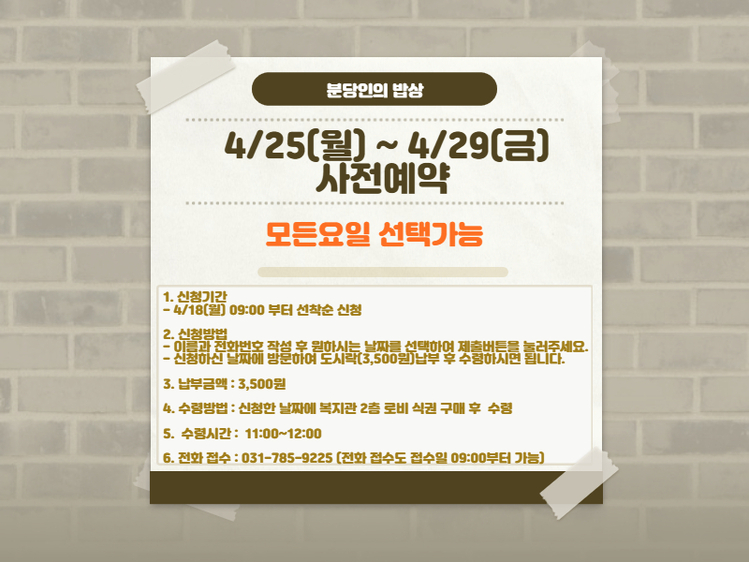 4/25(월)~4/29(금) 분당인의 밥상 사전예약
