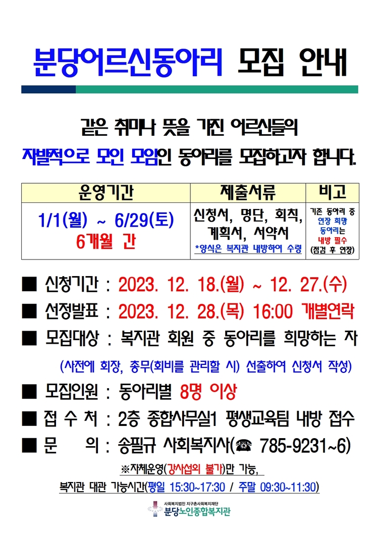 2024년 상반기 분당어르신 동아리 모집 안내