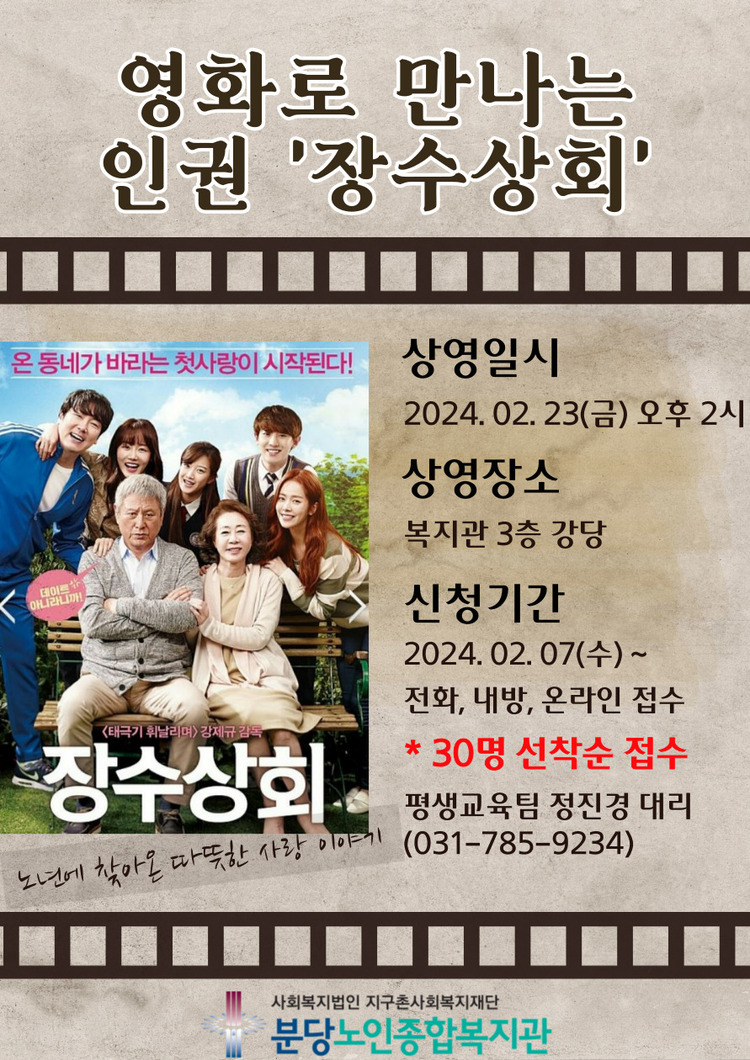 인권영화 '장수상회' 상영을 합니다.