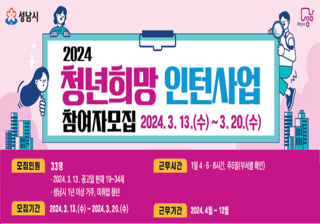 * 참여대상 : 성남시 1년이상 거주 미취업 청년(2024.3.13 공고일 현재 19~34세)
