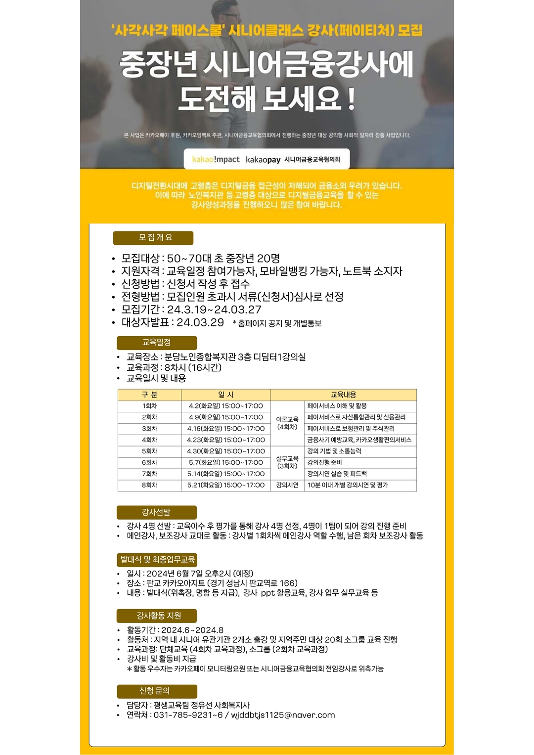 * 본 사업은 카카오페이 후원, 카카오임팩트 주관, 시니어금융협의회에서 진행하는