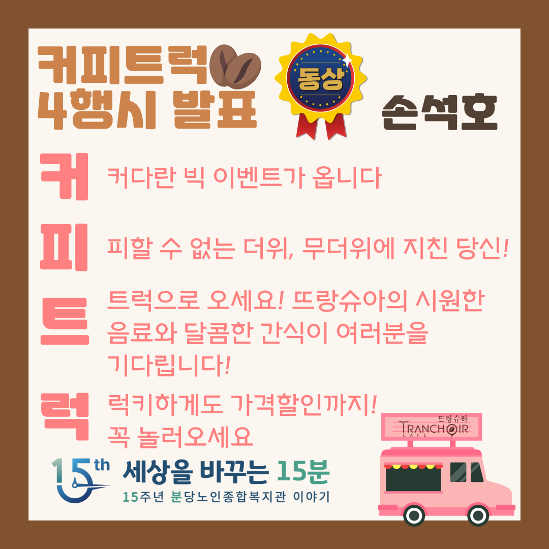 커피트럭을 아주 멋지게 홍보할 수 있는 기회를 얻을 수 있었습니다.