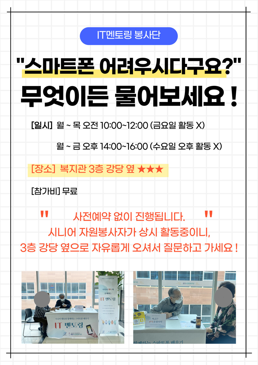 궁금한게 있으시다면 자유롭게 오셔서 스마트폰 활용 방법을 배우세요 !!